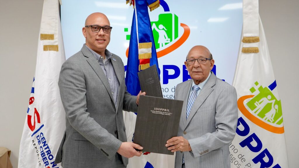 Santo Domingo. – El Instituto Dominicano de Prevención y Protección de Riesgos Laborales (IDOPPRIL) y el Centro Nacional de Ciberseguridad (CNCS) firmaron un convenio de cooperación para realizar acciones que impulsen y promuevan una cultura nacional de ciberseguridad, basada en la protección efectiva del Estado dominicano y sus habitantes.